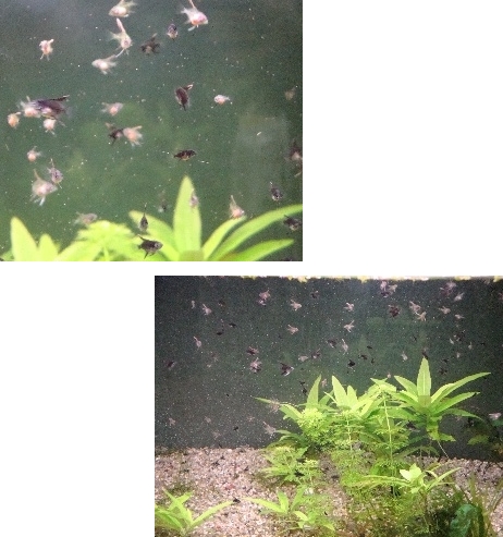 1ヶ月ちょっと過ぎた、ちびのエンゼルフィッシュたちです。(150匹ぐらい)