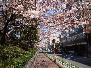築地川公園の桜(昭和39年東京オリンピック時に川が埋められ公園になりました。)アクアグリーンと築地市場の中間あたりに位置します。