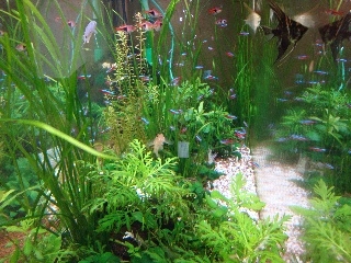 水槽内のコケを食べたり、草を食べたり、バクテリアを食べたりしています。